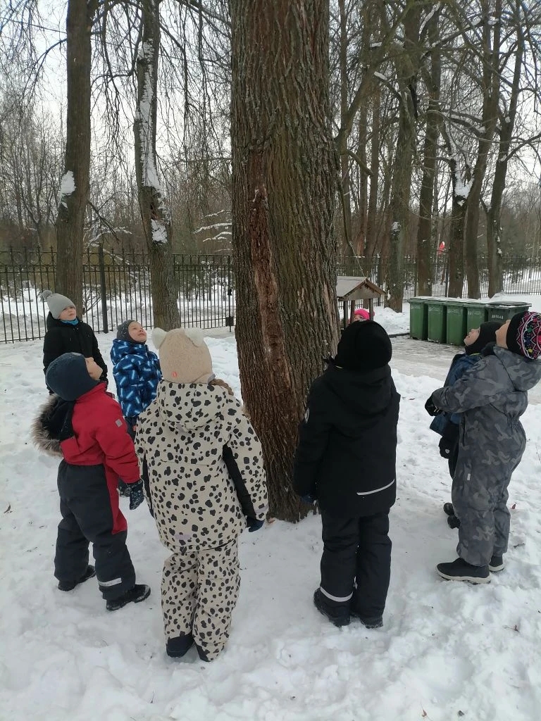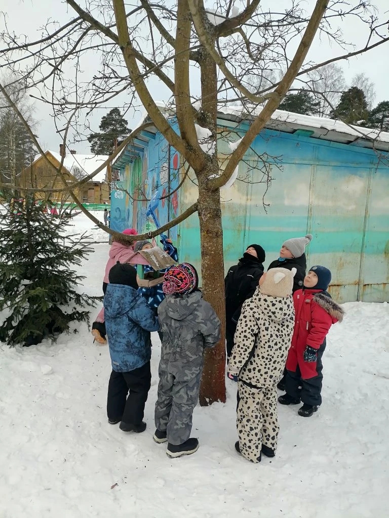 В завершении занятия отгадывали загадки про птиц и определяли , какой зверь оставил следы на снегу. На прогулке, ребята наблюдали за деревьями и кустарниками ,узнали как можно зимой определить дерево если на нем нет листьев, а так же покормили птиц .
