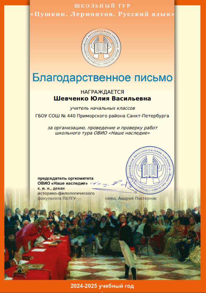 ПОДВЕДЕНЫ ИТОГИ (в возрастной группе первоклассников) школьного этапа Открытой всероссийской интеллектуальной олимпиады "Наше наследие"